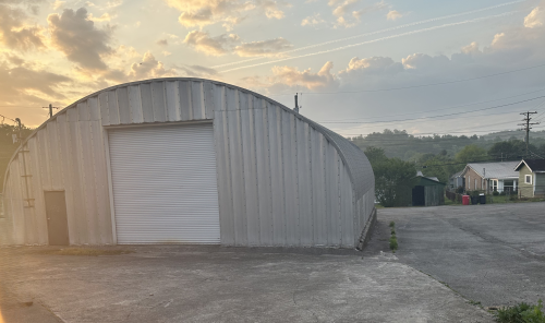A 2,500 sq. ft. Quonset hut-style storage building with roll-up door, perfect for warehousing or support operations